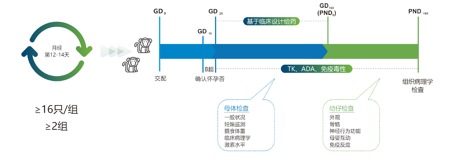 - (5)猴生育力與早期胚胎發(fā)育毒性伴隨毒代動(dòng)力學(xué)試驗(yàn)(I段);
